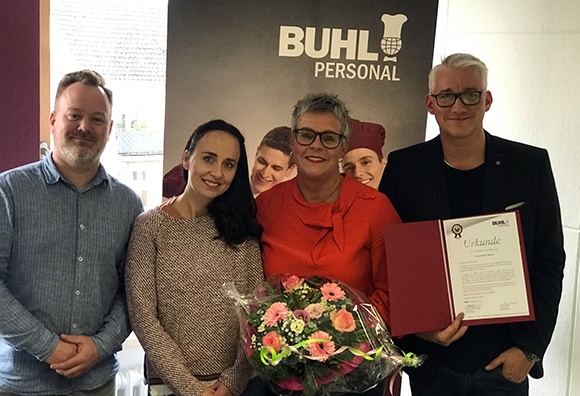 Schon wieder gab es ein 10-jähriges Jubiläum zu feiern: Diesmal in unserer Niederlassung Düsseldorf! Dort hat vor genau 10 Jahren, am 02. November 2009, Frau Kirsten Busch als Personaldisponentin Küche ihren Dienst für uns angetreten. Mit Fleiß, Engagement und Fachkompetenz hat sie sich schnell unentbehrlich gemacht. Bis heute trägt sie als kaufmännische Teamassistentin mit ihrer großen Erfahrung und ihrem Wissen maßgeblich zu unserem Erfolg in der nordrhein-westfälischen Landeshauptstadt bei.