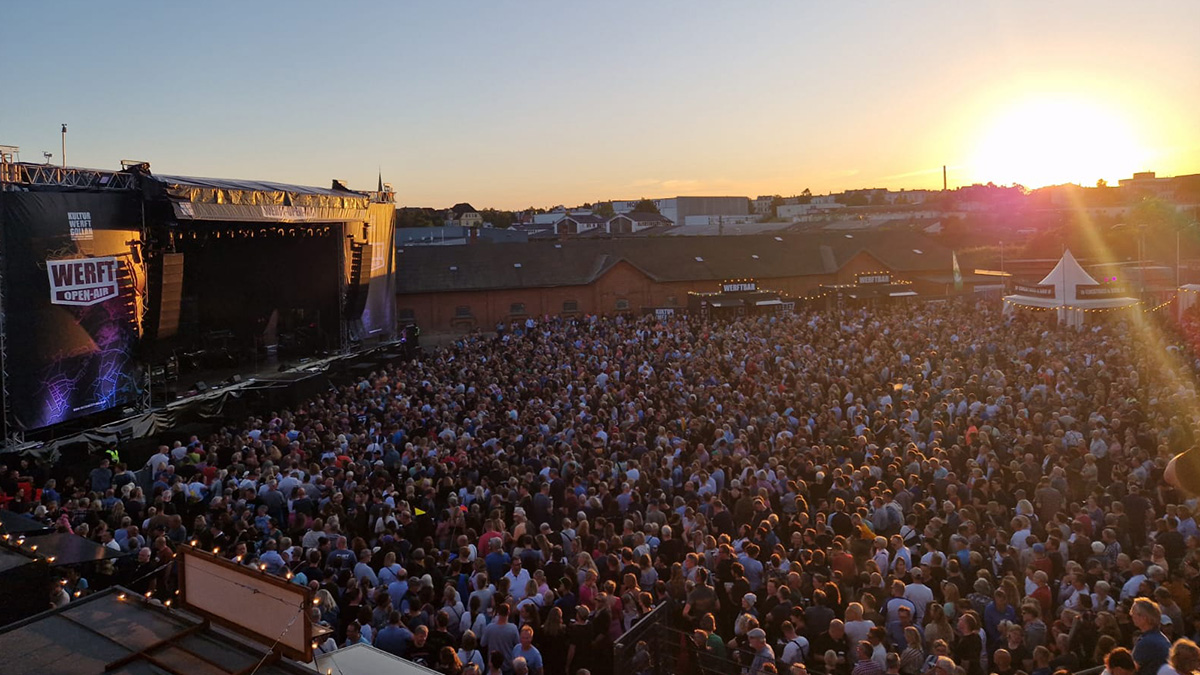 4.900 Gäste feierten mit den Musikern von Fury in the Slaughterhouse. Charterfolge, Goldene Schallplatten und ausverkaufte Tourneen machen sie zu einer der populärsten deutschen Rockbands. Seit fast 40 Jahren steht die Gruppe auf der Bühne und hat nichts von ihrer Schlagkraft eingebüßt. Lautstark und leidenschaftlich sang das Publikum die bekannten Klassiker mit, währen ein Lichtermeer aus Smartphones den Abendhimmel erleuchtete.