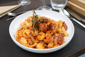 Schließlich lockte das Service- und Küchenteam der HOGALOUNGE mit allerlei kulinarischen Freuden: Als Hauptgang gab es u.a. leckere Orecchiette mit Salsiccia in pikanter Tomaten-Fenchelsauce, 24h geschmorten Kalbstafelspitz oder den schmackhaften HOGALOUNGE-Pfifferling-Salat. Dazu wurden die Gläser gefüllt mit köstlichem Rosé alkoholfrei unserer hauseigenen Marke aus dem HOGAPAGE-Shop.