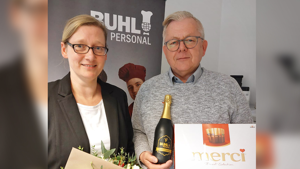 Regionalleiter Klaus Trautmann gratulierte persönlich: „Für unsere Bestandskunden sind Sie die Ansprechpartnerin, die dafür sorgt, dass Personallücken zuverlässig geschlossen werden können. Mit Ihrer großen Erfahrung sind Sie eine unentbehrliche Stütze für unsere Niederlassung in der Hansestadt. Vielen herzlichen Dank für 15 Jahre BUHL!“