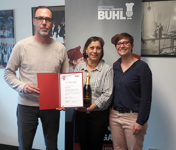 Frau Iris Schrickel aus Mannheim konnte vor kurzem ihr 5-jähriges BUHL-Jubiläum feiern. Die erfahrene Küchenkraft ist eine große Stütze für unser Team in der „Quadrate-Stadt“, denn sie ist als sehr gute und zuverlässige Mitarbeiterin bereits seit 5 Jahren bei unserem größten Kunden aus der Chemie-Industrie im Einsatz. Sie freut sich bereits auf die nächsten Jahre und will, auch wenn sie später in Rente geht, weiter bei uns aktiv bleiben.