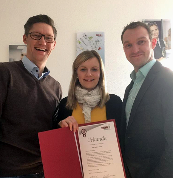 Frau Sabine Braun aus Dresden hat vor kurzem ihr 5-jähriges BUHL-Jubiläum gefeiert: Am 15. Dezember 2013 hat sie bei uns als Personal- und Vertriebsdisponentin Service begonnen und in den vergangenen Jahren mit ihrem Fleiß, ihrer Fachkompetenz und Zuverlässigkeit maßgeblich zum Erfolg unseres Standortes in der sächsischen Landeshauptstadt beigetragen.