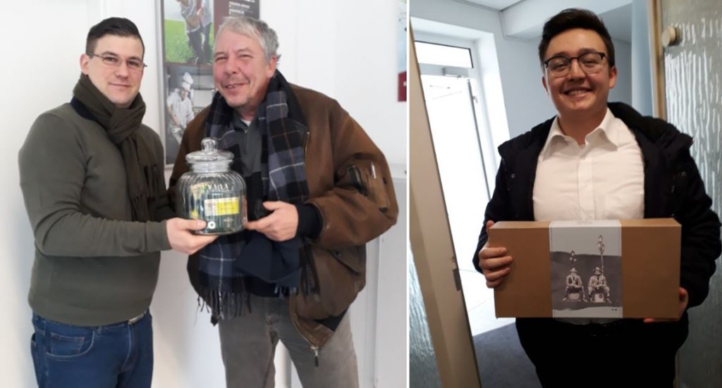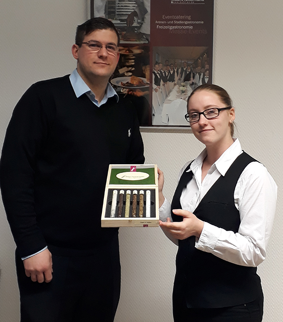 Nun wurden die Gewinne den Mitarbeitern – natürlich persönlich! – überreicht. In Münster beispielsweise freute sich Herr Taylan Ergün über ein exklusives „Gin-Tasting Cocktail Set“ mit Rezepten und Anleitungen bekannter Barkeeper. In Lübeck gewann Katrin Pretzer eine „Gewürzkiste Pepper and Salt“ und kann ihre Steaks nun mit einer ausgefeilten und perfekten Würzmischung genießen. Ganz besonderen Teegenuss erwartet Herrn Hans-Jürgen Steinbach – ebenfalls in Lübeck: Er gewann ein Vintage-Vorratsglas mit edlen 30 Tea-Diamonds von Eilles.